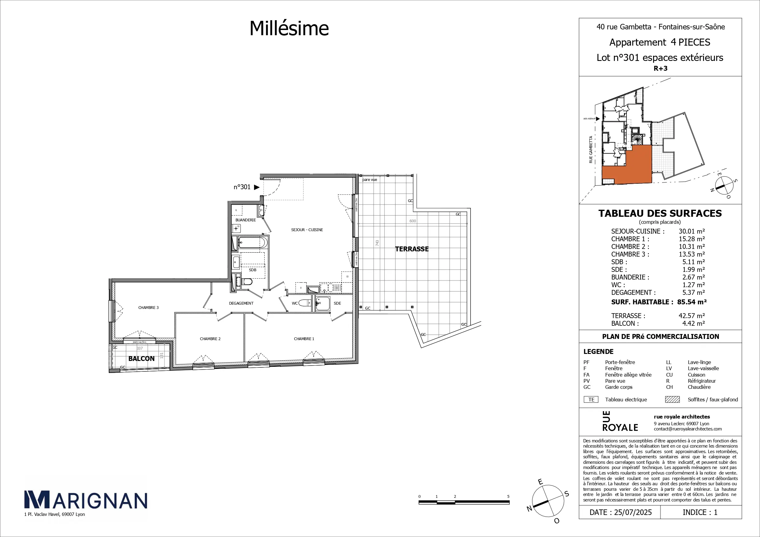 Succombez au charme de ce superbe appartement 4 pièces de 85,54 m², idéal pour les familles ou ceux qui recherchent de beaux volumes. Véritable prolongement de l’espace de vie, une magnifique terrasse de 46,99 m² exposée plein Sudvous offre un extérieur unique, parfait pour vos repas d’été, vos moments de détente ou recevoir vos proches.