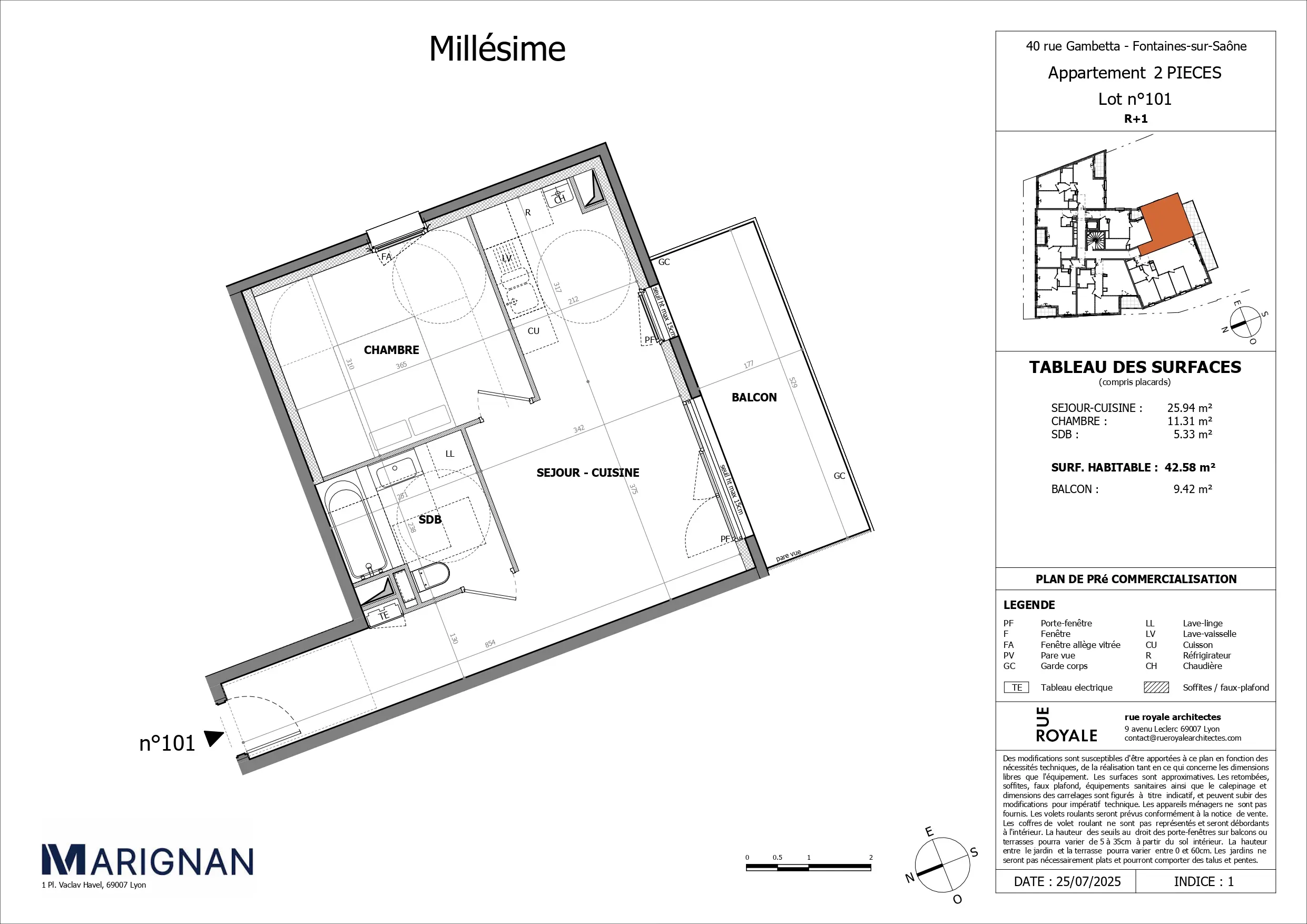 - Surface habitable : 42,58 m²