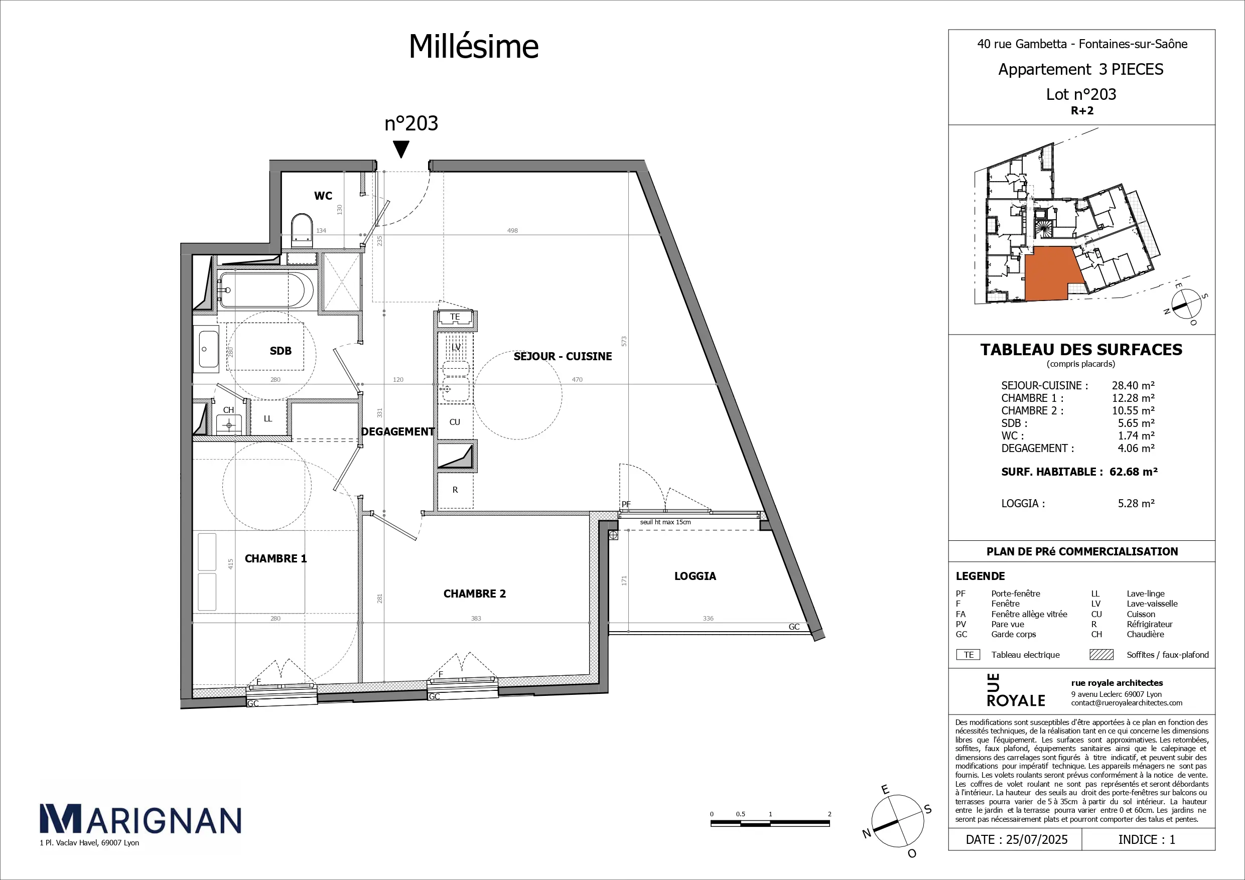 Vivez dans un 3 pièces spacieux de 62,68 m², pensé pour conjuguer confort, modernité et luminosité. Profitez d’une loggia de 5,28 m² exposée Ouest, idéale pour vos moments de détente en fin de journée. Situé au 2ᵉ étage, cet appartement comprend également un stationnement privatif (P009) pour un quotidien pratique et sécurisé.
